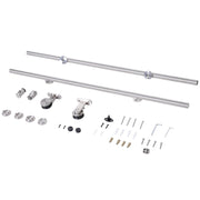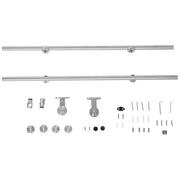 - Includes: Rail support, Door stopper, Sliding rail, End cap, Round shape roller, Floor guide, Tools