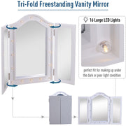 - Tri-fold design lets you see your face from any angle, folds for storage and protection