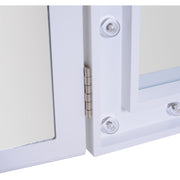 - FOLDING: Features a large middle mirror with two small mirrors on each side. Hinged to set to different angles easily. Folds for storage.