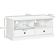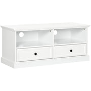 Upgrade your living room with this HOMCOM entertainment unit. The pure white colour makes the unit a beautiful focal in bedroom, living room or any other places. 2 drawers and open shelves provide ample storage space. According to your preference and needs, you can use the entertainment stand for keeping game controller, cable box, books and video games. There are 2 cable holes for organizing wires without messy. Without a doubt, it will be a perfect companion for your relaxing moments.