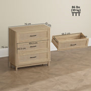 Wooden 3 Drawer Dresser For Bedroom or Living Room - Oak Finish - 76 x 35 x 76cm