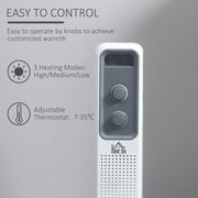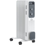 Keep your home perfectly heated with this oil-filled radiator from HOMCOM. With a high, medium or low mode and an adjustable temperature between 7-35 °, you can get the exact heat you desire. Enjoy this heater at ease, knowing it will turn off if overheated or toppled over. Its compact size is ideal for smaller spaces and can be moved with minimum fuss, using the castor wheels or handle.