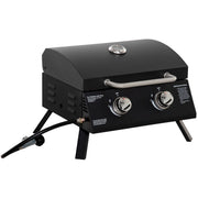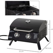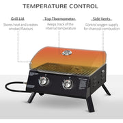 Portable 2 Burner Gas BBQ Grill with Lid Thermometer, Black