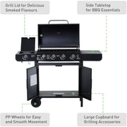 4 Burner Gas BBQ With Side Burner, Trolley with Storage
