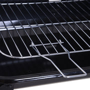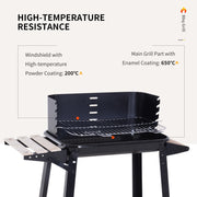 This charcoal grill from Outsunny is perfect for cooking up delicious barbecue food with friends when the sun comes out to shine. Made from durable and high-quality metal with a porcelain coating to finish, it is heat resistant up to 650° for quick and even cooking of food, with the spacious size of the pan giving you plenty of room for cooking large quantities of food. Height adjustable to four different levels, the grill pan can be raised or lowered to give you complete cooking control and it is finished with a wind shield and two wooden shelves for convenient placing of plates, cutlery, condiments and extra food and charcoal. It's the perfect recipe for delicious outdoor dining.