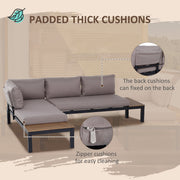 Enjoy the Summer sun like never before with this outdoor lounging set from Outsunny. Consisting of three pieces, the set includes a two-seater sofa, a chaise lounge and a matching table to seat up to three people with ease ideal for enjoying the outdoors with family and friends. Using solid aluminium, the frame of each piece is strong and resistant to light weathering, with plush padded cushions on the seats and backs for you to sink in and relax for hours on end. Small end tables on the sofas complete each piece, with a matching table included for extra surface space meaning you won't have to move a muscle once sat down.