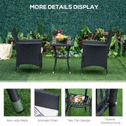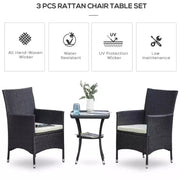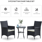 Elevate your outdoor area with the exceptional Outsunny 3 Piece Rattan Bistro Set. Crafted from premium PE wicker rattan, this set adds timeless elegance to your patio, deck, sunroom, or garden. Its outstanding UV and water resistance guarantees year-round beauty. Lightweight chairs and a versatile table let you create your ideal outdoor oasis effortlessly. Enjoy durability, style, and relaxation with this stunning set. Transform your space today