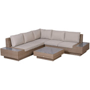 - LUXURIOUS FOUR-PIECE SET: The rattan corner sofa includes two loveseats with attached end tables, a corner seat and a square table. The grey rattan sofa set can be arranged however you wish.
