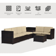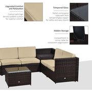 Make the most of the warm weather with this eight-piece garden rattan furniture set from Outsunny. Its open design is also great for combining two or more sets together in your cafe, restaurant or business to allow you to cater to larger seating numbers and expanding your outside business revenue. Finished with a hidden storage compartment in the corner table, you'll never leave the area in a mess, making it ideal for those with busy lifestyles and little time to spare.