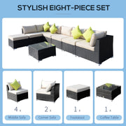 • STYLISH EIGHT-PIECE SET: Formed of two corner seats, four middle seats, a footstool and a coffee table, giving you complete freedom to set it up how you like. Perfect for relaxing with friends and family.