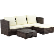The 3 piece conversation patio furniture set by Outsunny is a modern and trendy outdoor patio furniture set that provides the user versatility by way of the unique reconfigurable design,offers comfortable and exceptionally stunning outdoor lounging.One of the loveseat has a 5-level adjustable back for added comfort so it can be used as a lounger.Also, the table features storage space under the tabletop.It is perfect for the pool side, deck or patio, these cushioned seats will let you and your guests to sit back, relax and enjoy the great outdoors.