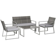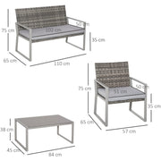 - FOUR-PIECE SET: Stripped back yet still stylish, this set includes two chairs, a two-seater sofa and a matching coffee table. Compact yet comfortable, it is perfect for balconies, small gardens, patios wherever you want to enjoy the fresh air.