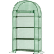 Experience the joy of year-round gardening with the Outsunny Portable Greenhouse! Protect your plants, vegetables and more from harsh weather and pests. The sturdy steel frame and durable PE cover create a protective barrier, keeping your plants safe from wind and rain. The roll-up door makes accessing your plants a breeze. With four tiers of metal wire shelves, you'll have plenty of room for all your gardening needs. The compact size is perfect for small spaces and urban living. Bring the garden to your doorstep!