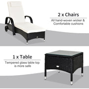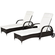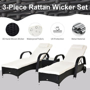 3pc Rattan Garden Lounge Set, Wheeled Loungers, Table
