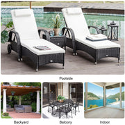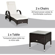 The rattan patio chaise lounge set from Outsunny comes complete with 2 loungers, 1 side table and cushions. The seat has 5 adjustable positions to give maximum relaxation and comfort. The side table also has a glass top to keep your drinks at easy reach, and the set can be used indoors and outdoors.