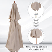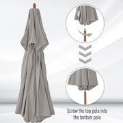 • CRANK MECHANISM: Open and close your umbrella in seconds with the easy-to-turn handle located on the side of the poplar wood pole. The patio parasol can be fixed in three positions by latch for different angle