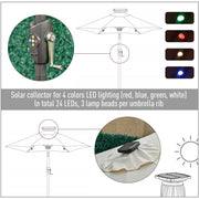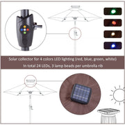 • LED LIGHT & SOLAR PANEL: 24 pre-installed LEDs provide energy-efficient lighting, 3 LED lights per rib of garden parasol, 4 colour adjustable (red, blue, green, and warm light).
