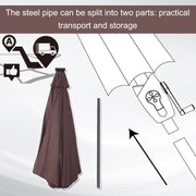 • STEEL FRAME: A tough core, keeping the garden umbrella parasol upright and in place all day long. 8 Ribs connect the canopy to the pole for extra strength