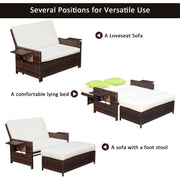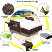 - TWO-PIECE SET: The garden daybed is formed of the sofa and footstool - use together or separately. Hinged sides as a handy side tray. Sofa features adjustable back.