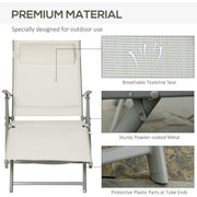Bring classic comfort to your garden with this Outsunny reclining garden chair. A steel frame for a strong core comes with a seven-level adjustable back - relax in a position you want. The removable cushion seat keeps you comfortable, with a detachable pillow for the head and neck. Foldable frame to carry and more easily.