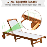 For complete relaxation in the sun, look to this lounger from Outsunny. Crafted from sustainably sourced acacia wood, it is both easy to clean and extremely durable to provide you many enjoyable years of use. Featuring two wheels to be moved around easily, it is finished with an adjustable backrest to position it however you like. It's the perfect piece of furniture for when the sun comes out to shine.