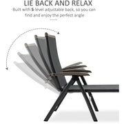 This sun lounger from Outsunny is perfect for relaxing in the sun for hours on end. The breathable mesh fabric on the seat and back holds you comfortably, with high back and armrests for support. Adjustable to five positions, you can change what position you lay back. Folding design is easy to carry with you and store.
