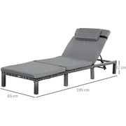 Rattan Sun Lounger With Cushions, Mixed Grey