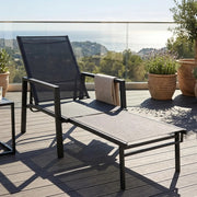 Sun Lounger with Adjustable Backrest and Pull Out Footrest for Garden Relaxation Dark Grey