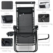 Folding Zero Gravity Chair, Cup Holder & Canopy Shade