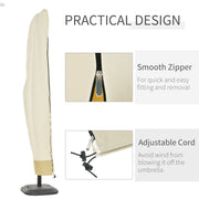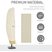 Keep your garden parasol clean, fresh and beautiful all year around with this useful umbrella cover protector from Outsunny. In a fresh White colour for a beautiful look when in use, it is made from tough and heavy duty 600D Oxford fabric with a thick PVC lining to ensure no water, dust, debris and dirt will seep through underneath. With a smooth surface for quick and easy cleaning, it is finished with bottom fastenings to secure during windier conditions and a zip fastening to place on take off with ease. A great garden accessory to have for years to come.