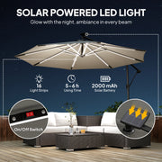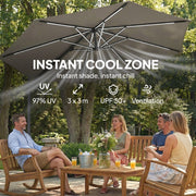 3m Cantilever Garden Parasol with LED Lights - UPF 30+ Adjustable Shade for Patio, Grey