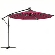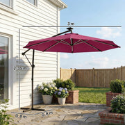Cantilever Parasol with Lights and Adjustable Shade for Patios, Free Rain Cover, Wine Red