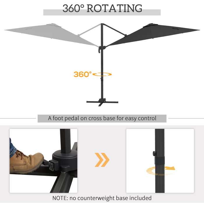 Dark Grey 3m Cantilever Garden Parasol With Base And Solar LED Lights For Shade
