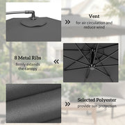 Grey Cantilever Umbrella for Unobstructed Shade Over Outdoor Dining and Seating Areas