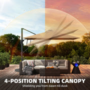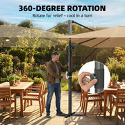Square Cantilever Parasol with Lights For Garden - Easily Adjustable UPF 30+ Shade - Crank/Tilt - Khaki