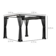 3m Garden Pergola With Retractable Canopy and Sides, Dark Grey