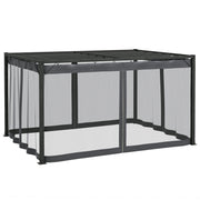 Metal Pergola Kit With Retractable Roof and Mosquito Net, Dark Grey