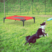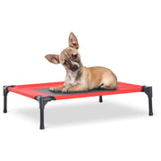 Elevated Camping Pet Bed, Metal Frame, Black/Red