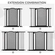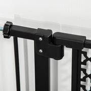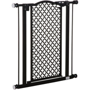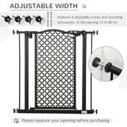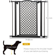 Keep pets away from specific places easily with this safety gate from PawHut. Designed with elegant carved pattern, which can decorate your room. It's made from solid steel for strength, and its width can be adjusted between 74cm and 80cm, allowing it to fit into different sized spaces with ease. Slide and lift, the handle is easy to open, allowing you to pass through quickly without your pet escaping for security. Double locking mechanism ensures your pet secured in a place to provide safety.