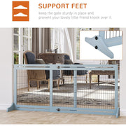 This PawHut wooden gate is a safe and efficient way to keep your pets in one area whilst adding a decorative touch to your home. It is a retractable gate with two separate panels, and its adjustable length and freestanding design allows you to use it in various places and sized areas. Made of pine wood panel with steel wires is sturdy enough for daily use, and wide feet on the end for balance. A great piece for the hallway, doorways, and other areas in the home.