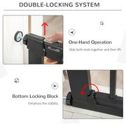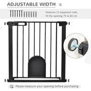 Keep pets away from rooms when required with this Pawhut pet stair gate. Made from sprayed metal with lead-free treated surface for strength and safety. 12 expansion nails included, ranging from 75 cm to 82 cm wide, allowing it to fit into different sized spaces with ease. Slide and lift, the handle is easy to open, allowing you to pass through quickly without your pet escaping for security. Double locking mechanism ensures your pet secured in a place to provide the maximum safety.