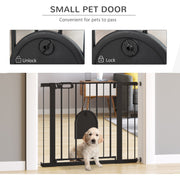 Keep pets away from rooms when required with this Pawhut pet stair gate. Made from sprayed metal with lead-free treated surface for strength and safety. 2 extensions included, ranging from 75 cm to 103 cm wide, allowing it to fit into different sized spaces with ease. Slide and lift, the handle is easy to open, allowing you to pass through quickly without your pet escaping for security. Double locking mechanism ensures your pet secured in a place to provide the maximum safety.