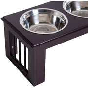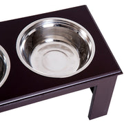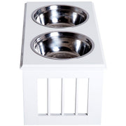 Make meal times easier for your pets with this feeding bowl duo from PawHut. With an MDF base that has been built to provide years of use, it features two round stainless steel bowls. Durable, hygienic and dishwasher safe, both bowls are easy to look after and safe for your pets to use and are great used together for both food and drink. In an elevated design, the base helps make eating cleaner and easier for your pets, aiding digestion and putting less strain on the neck. Compact in size, this bowl duo is a must for every household with a dog, cat, rabbit etc.
