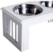 - MDF base with stainless steel bowls for stability, durability and hygiene.