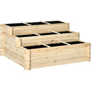The raised garden table from Outsunny will add vitality to your space. The design of 3 tiers and 9 compartments can give you enough room and separate space is better for plants with different growth cycles. The gradually elevated design takes full account of all kinds of root lengths and sizes. Built of 100% fir, the plant box is stable and durable. The polished surface and black non-woven fabric protect it well. Simple and rustic style is suitable for garden, balcony, lawn, or yards!