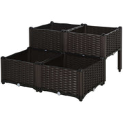 Give your greenery the perfect new home with this four-planter stand from Outsunny. A two-tier design, which is ideal for organising your plants and separating them if needs be, the frame is formed from tough and thick plastic to ensure lasting use outdoors, finished in a rattan-effect look so it can blend in beautifully with all your other garden furniture. Consisting of two upper boxes and two bower boxes, the set is easy to set up and can be stored away easily, as well as allowing you to buy multiple pieces to keep building for more display if needed. It's finished with drainage holes for any over-excess and thick legs to ensure balance and stability.