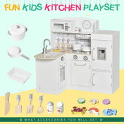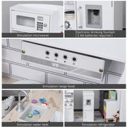 Kids Wooden Play Kitchen, Water Fountain, Microwave, White