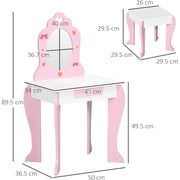 Pink Kids Vanity Set (3-6 Years): Dressing Table, Mirror, Stool