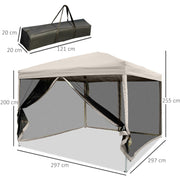 3x3 Pop Up Gazebo With Mesh Sides, Tan