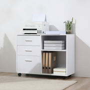 - SPACIOUS: Features three drawers, two open compartments and a flat worktop, giving you plenty of room to keep files, folders, paperwork and printers stored and organised. Adjustable shelf on the right.